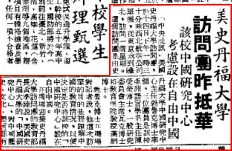 [Central News Agency dispatch] The United States’ Stanford University has dispatched a committee led by Chinese History Research Chairman, Dr. E. Howard Brooks, who is joined by two other directors from the university’s East Asian Languages Department as committee members, General Research Committee Chairman, Dr. Valkenburg, and Education Department professor Dr. Hanna.