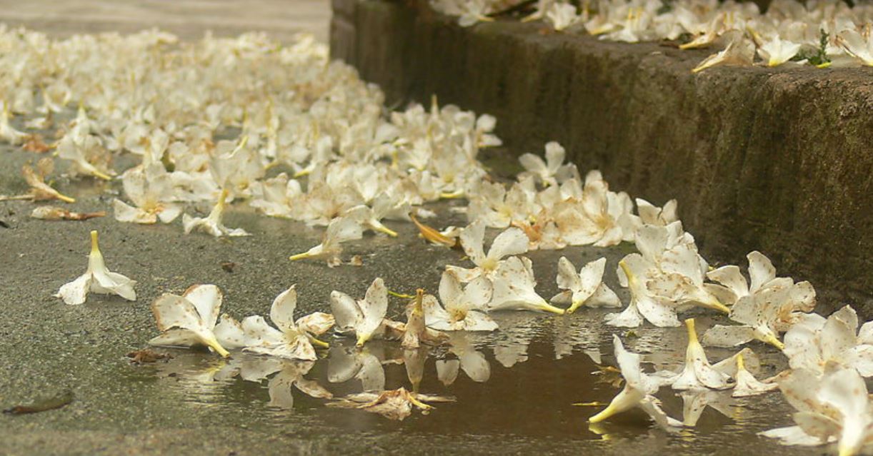 落花不可輕視。上一世紀九十年代在日本某處的櫻花季,一位記者照常報導花訊。忽然櫻花落了滿身,正是所謂的花滿為患。結果記者未轉睫而被櫻花壓死了。人盡皆知,是所謂的花瓣凌遲。竟不知人脆弱至可以被落花除滅的地步? 但沒人敢替她叫屈。