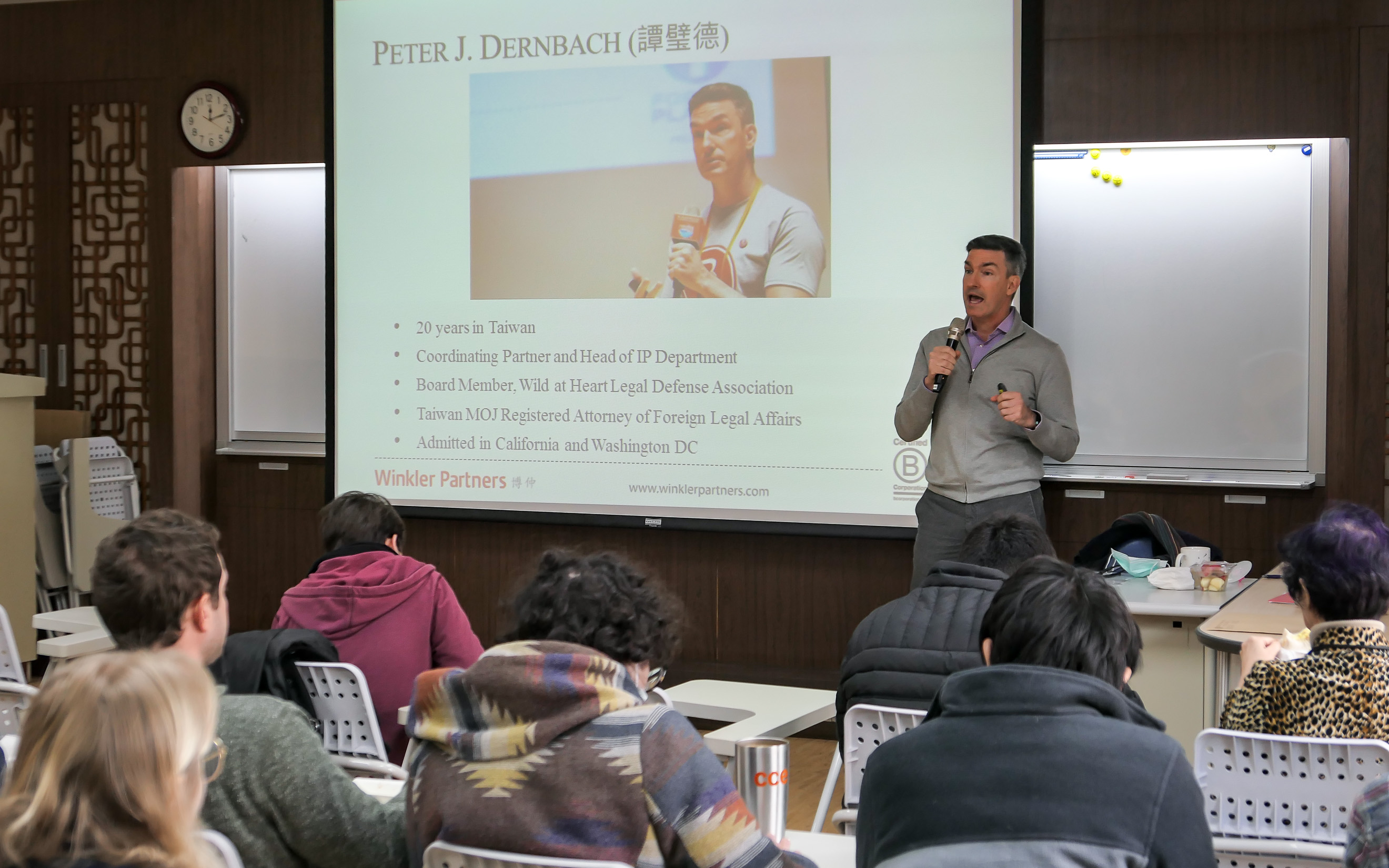 「環境損害相關新聞難免令人沮喪······但是大家必須保持積極的態度」,博仲法律事務所(Winkler Partners)的合夥人譚璧德(Peter J. Dernbach)於1月31日表示。這天,ICLP特別邀請譚璧德律師來講述該事務所為加強環保所採取的各項措施,可是他也承認在環保上所下的工夫偶爾感覺就像「在泰坦尼克上重新排列躺椅」一般。