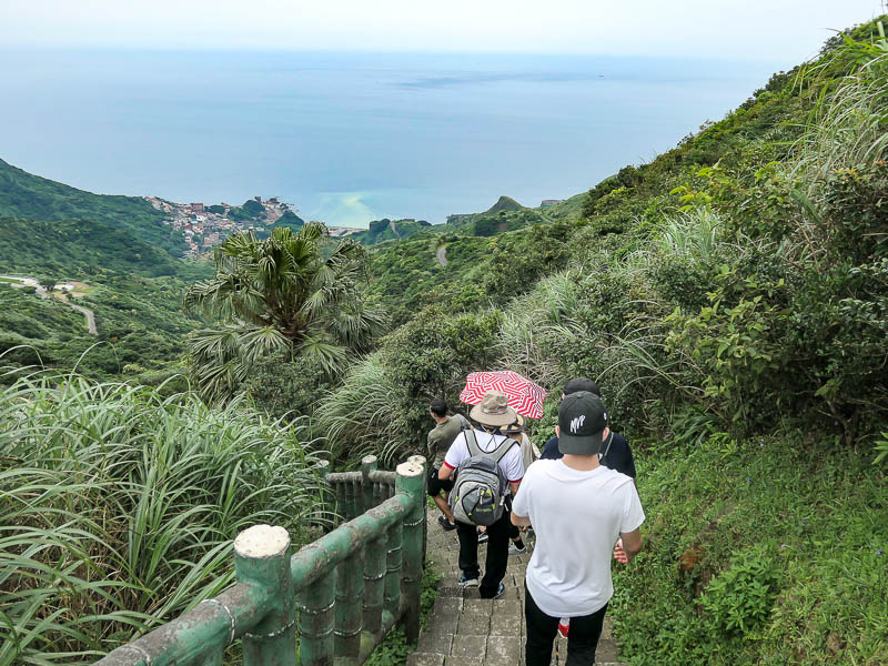去九份這個經驗是特別難忘的。首先,九份的自然風景很漂亮。其次,我們去九份遊山玩水那天真的熱死了。我們爬上無耳茶壺山的時候,我是一邊大喘氣,一邊享受九份的風景的。我們從無耳茶壺山看見了所謂的“陰陽海”。顧名思義,這個地方看到的海洋有兩個顏色,而且顏色的對照很明顯。所以雖然當天非常熱,再加上上那麼多臺階很辛苦,甚至於三天之後我的腿還很酸,但我還是覺得九份很值得去!(等秋天再去爬無耳茶壺山應該會比較舒服吧!)