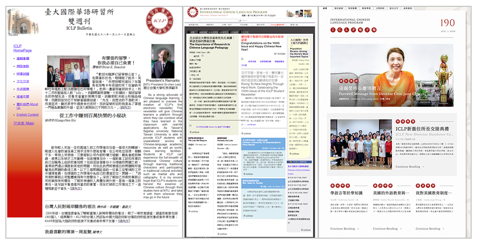 「ICLP電子報」自2009年1月創刊以來,歷經了近十年寒暑,已發行了共191期。電子報最初的設立的原因,是為了讓學生有一個發表文章的園地。不少前來就讀的學生,是正在攻讀碩博士的研究生,或是學有專精的學者。他們總十分認真地準備期末發表,以淺顯易懂的方式介紹專業知識。他們所寫的作文,無不是嘔心瀝血之作,總想辦法使用學過的語法與字彙,發表充滿見地的文章。